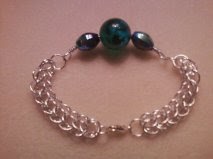 Chainmaille flowers bracelet. I love this bracelet but am disappointed in the jumprings I used, they have some sharp pointies at the opening. Lesson learned, when it comes to rings, you get what you pay for, however it was good practice with inexpensive materials.